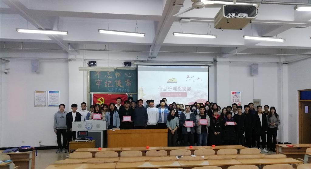 为在“不忘初心、牢记使命”主题教育中进一步做好“开门抓教育”,促进党团共建,球盟会信息管理党支部于2019年11月14日在逸夫楼B303教室举办“不忘初心,牢记使命”主题教育知识竞赛总决赛。信息管理党支部成员及120余名同学观看本次比赛。