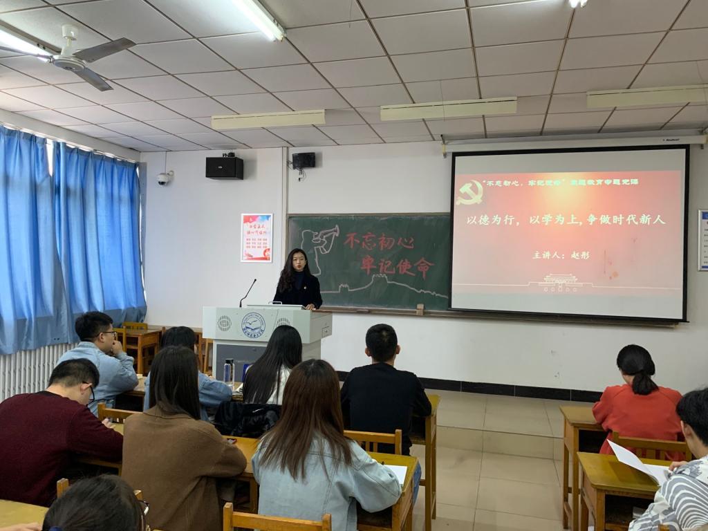 2019年10月31日,球盟会信息管理党支部书记为支部党员、积极分子讲授“不忘初心,牢记使命”专题党课。