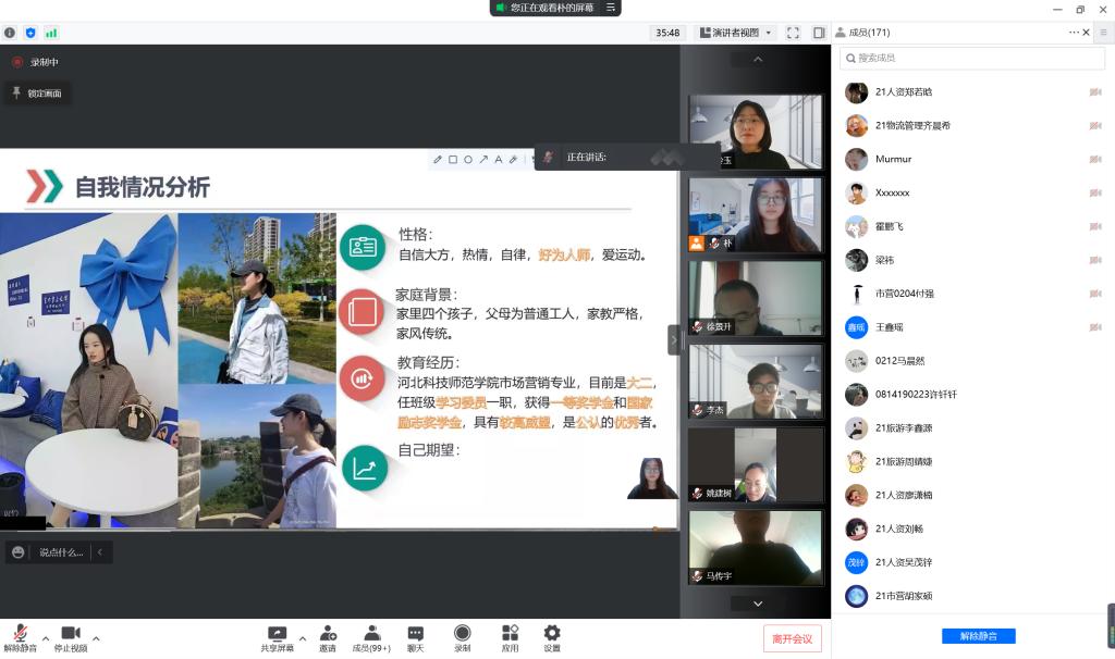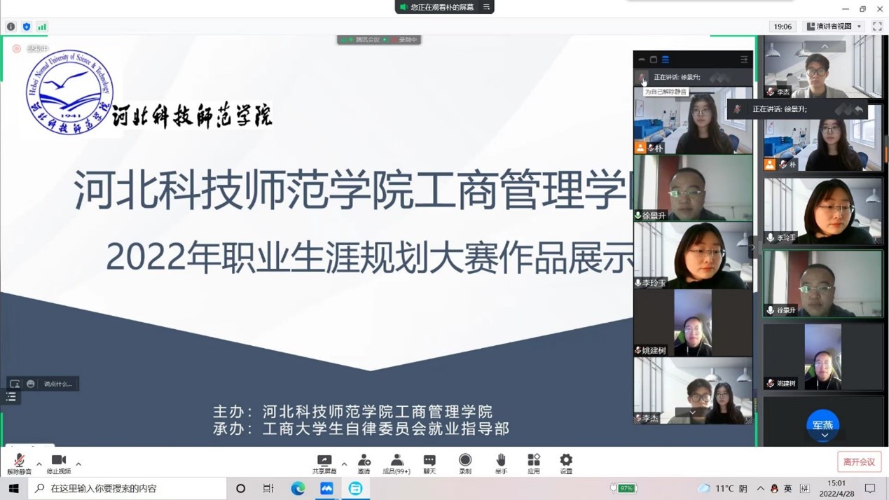 为促进员工提前进行职业规划,进一步提升就业紧迫性和职业竞争力,2022年4月28日,球盟会通过“腾讯会议”平台,举办了“规划未来 奋斗青春”职业生涯规划大赛。比赛特邀球盟会副书记、学工办主任,以及承担《老员工职业生涯规划》课程授课老师担当评委,来自球盟会5个专业的19名选手参加了此次大赛,180余名员工代表观看了职业生涯大赛的优秀作品展播。