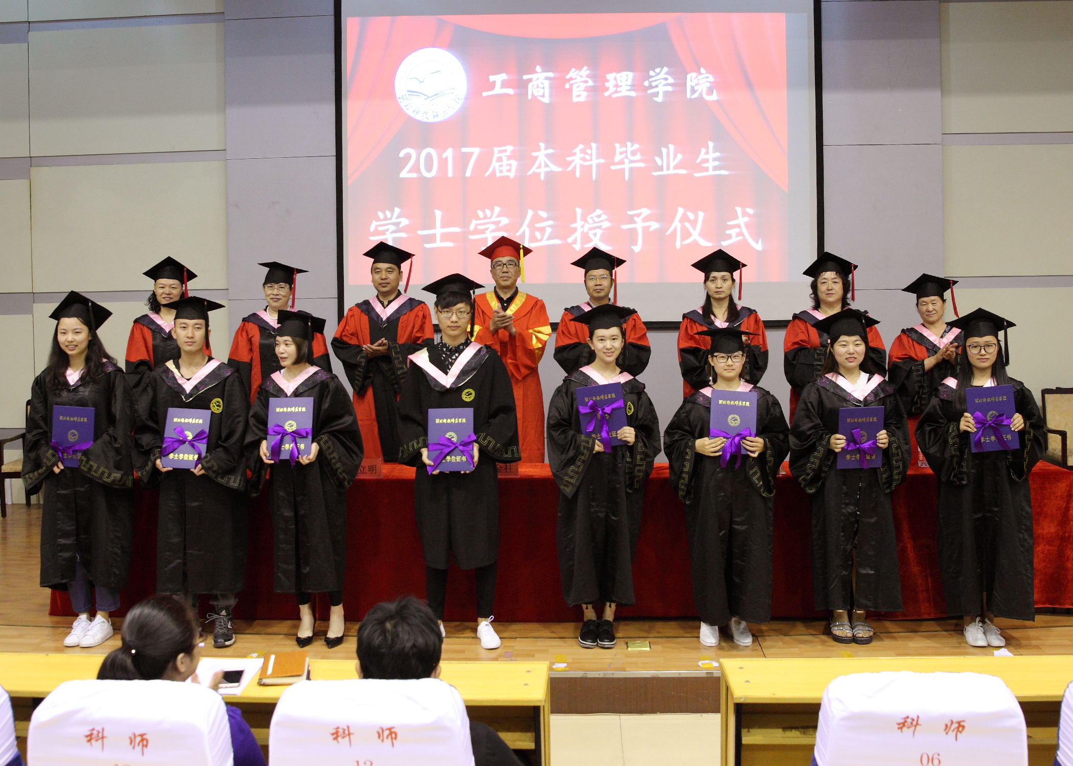 2017年6月13日上午9:00,球盟会2017届毕业生学士学位授予仪式在学术报告厅隆重举行。工商管理公司党政领导、各学科专业带头人、毕业班辅导员(班主任)和2017届毕业生及在校生代表参加了仪式。
