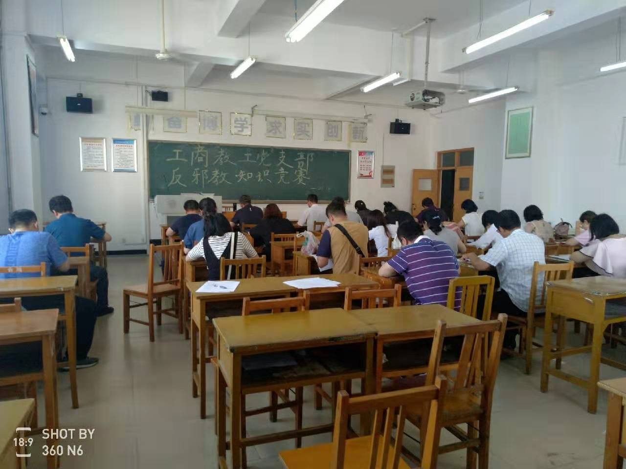 2019年7月4日工商教工支部举行了“反邪教”知识竞赛。竞赛采用闭卷形式,单人单桌就坐。最后评选出一等奖3人、二等奖5人,三等奖10人。