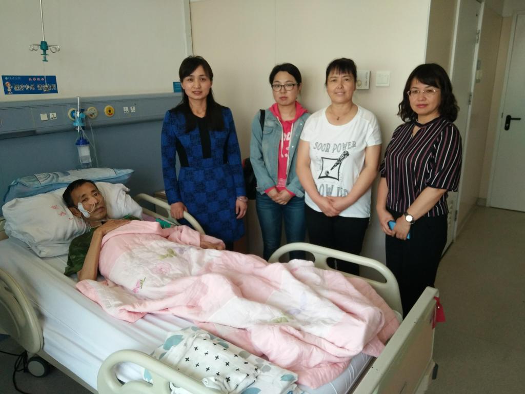 2018年5月9日,球盟会教师再次到医院看望沈汝波同志,为沈汝波同志捐赠善款,送去公司师生的牵挂和祝愿,沈汝波同志及家属对球盟会一直以来的关心和关爱表示感谢。沈如波同志虽躺在病床上,但仍在奉献着爱心,他以特殊的方式捐献了党费、捐助其他生病的同志,虽身患重病仍心系国家、关爱他人的博大胸怀让师生们深深感动。