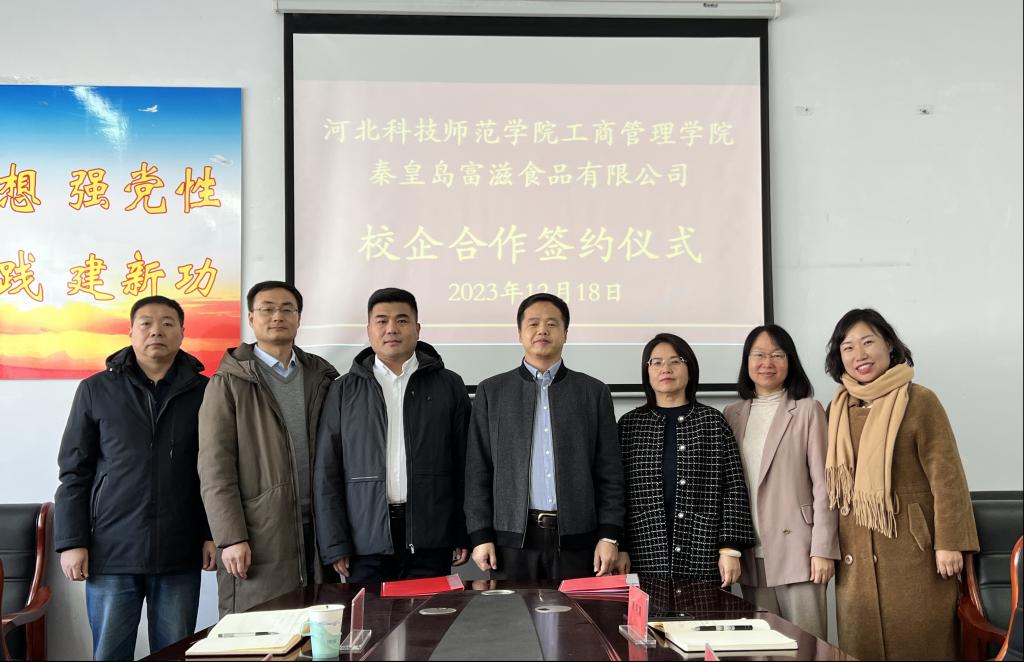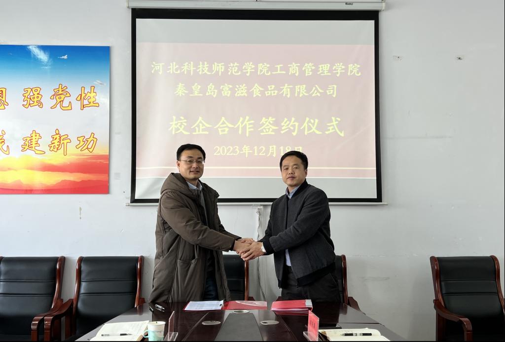 2023年12月18日上午,球盟会与秦皇岛富滋食品有限公司校企合作签约仪式在球盟会会议室举行,球盟会出席的人员有领导班子成员以及市场营销教学部专业老师代表,秦皇岛富滋食品有限公司出席的人员包括董事长、总经理及内销部经理。